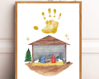Aquarell Krippe Handabdruck Kunst Jesaja 9:6 Bibelvers Etsy