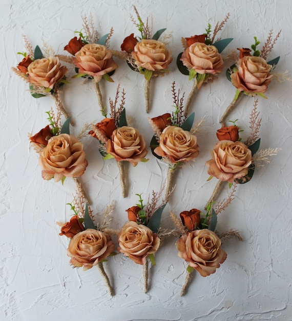 Taupe Tan Rust Boutonniere for Men Boho Wedding Buttonhole Etsy